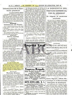 Hoy traemos al blog una noticia publicada en el ABC edición de Andalucia el 3 de Febrero de 1934 (hace 81 años) con motivo del robo de dinero a una bonaleja, que entendemos sucedió en Sevilla.