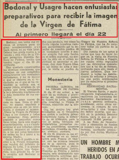 De la visita en 1949 de la Virgen de Fátima a Bodonal podéis leer dos crónicas del diario HOY del 21 y 24 de Abril de 1949 en la que se destacan las incesantes manifestaciones de fe.