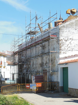 Traigo al blog unas fotos tomadas el pasado 19-3 durante un paseo por Bodonal, de la situación de las obras que se están llevando a cabo en el Cine - Teatro San Fernando, para la reparación de los tejados, que se encontraban en muy mal estado.