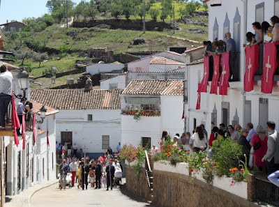 | subiendo al pico de Mirrio, al fondo el Castillo de Feria |