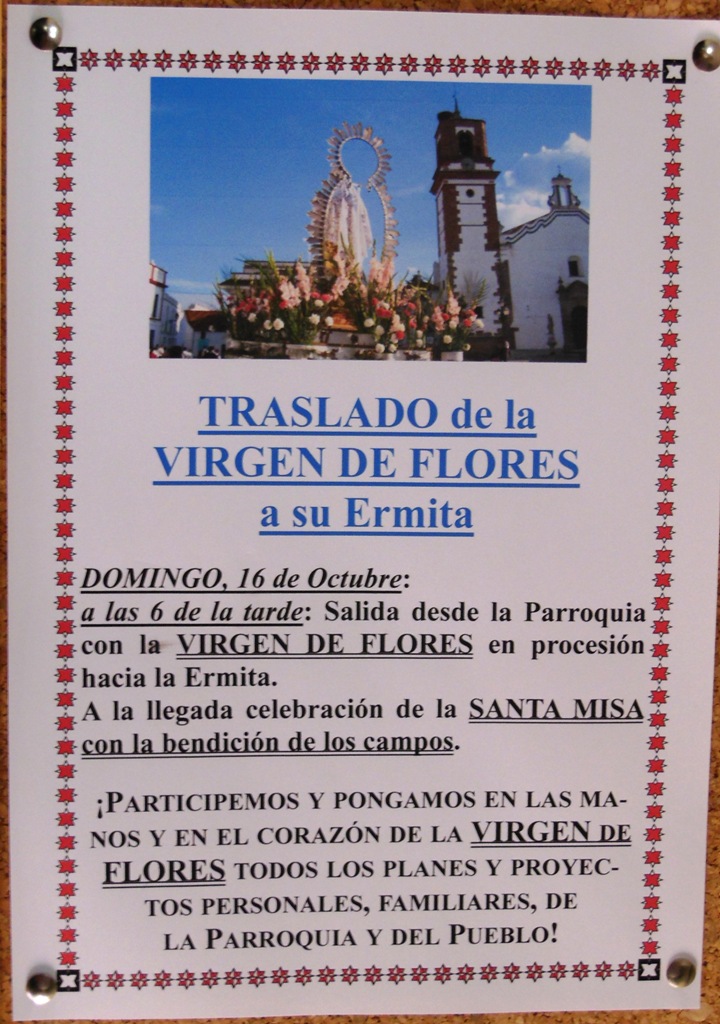 Ermita, la Santísima Virgen de Flores. La Virgen estaba en la Iglesia