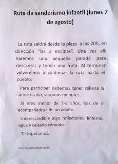 Importante: Los menores de 7 años deben de ir acompañados de un adulto / Se recomienda llevar: agua, calzado cómodo, linterna y chaleco reflectante.