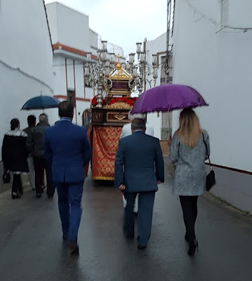 La Procesión tuvo que volver precipitadamente a la Parroquia, como consecuencia de la lluvia.